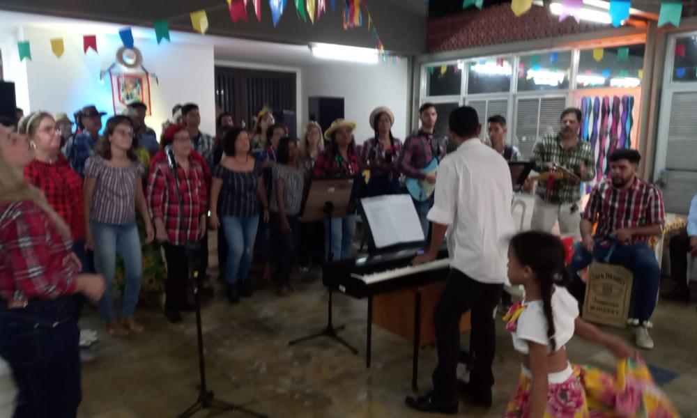 Foi um verdadeiro show da nossa cultura pois além das músicas, contamos com muita tradição dessa comemoração, como as comidas de milho, roupas xadrez e danças.