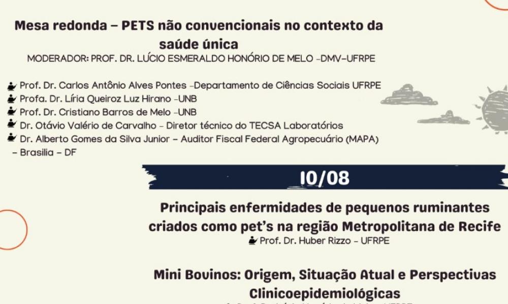 I Encontro sobre animais de produção criados como "PETS" não convencionais. Anfiteatro do CEGOE Dias 9, 10 e 11 de agosto de 2022 18:30h @ufrpe #ufrpe https://www.instagram.com/p/CghP7XnAmpC/?igshid=MDJmNzVkMjY=