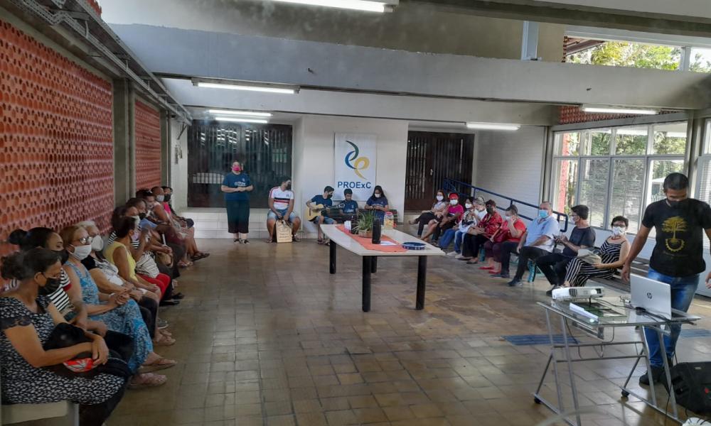 Contamos com uma linda acolhida para os novos participantes inscritos, tendo falas da Coordenadora de Comunicação, Arte e Cultura, profa. Fábia Burgos, da Coordenadora de Integração Continuada, Maria Presciliana, do maestro Ewerton Marinho e da Coordenadora do NEVI Nayana Pinheiro também de uma belíssima apresentação da Musical Naná Vasconcelos.