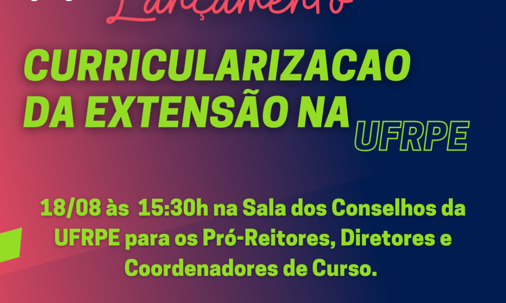 No próximo dia 18, quinta-feira, acontecerá o grande lançamento da curricularizacao da extensão, que consiste no processo de inclusão de atividades de extensão no currículo dos Cursos, considerando a indissociabilidade do ensino e da pesquisa.