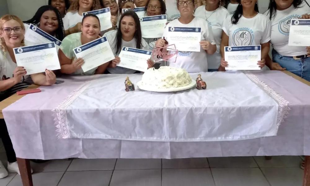da Profa Dra Maria José de Sena, do coordenador de ações sóciais da Paróquia de São Sebastião, Paulo Santos, estudantes do curso de Ciências do Consumo e de Gastronomia - Mylenna Oliveira; Leyliane Marques; Camila Lopes - e dos/as participantes dos cursos.
