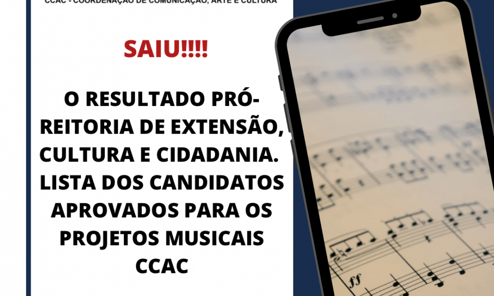 RESULTADO PRÓ-REITORIA DE EXTENSÃO, CULTURA E CIDADANIA. LISTA DOS CANDIDATOS APROVADOS PARA OS PROJETOS MUSICAIS CCAC