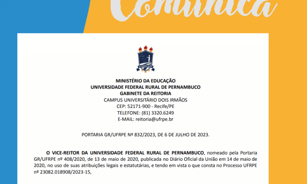 PORTARIA GR/UFRPE Nº 832/2023, DE 6 DE JULHO DE 2023.