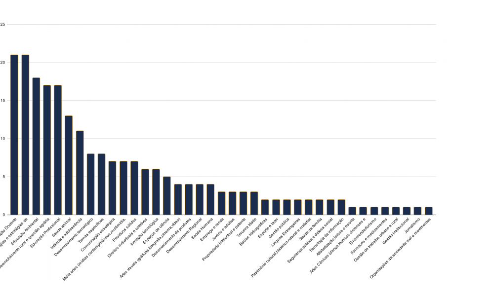 Em 2021 das 53 linhas temáticas a UFRPE/PROExC atendeu com seus projetos cadastrados no SIGPROJ: