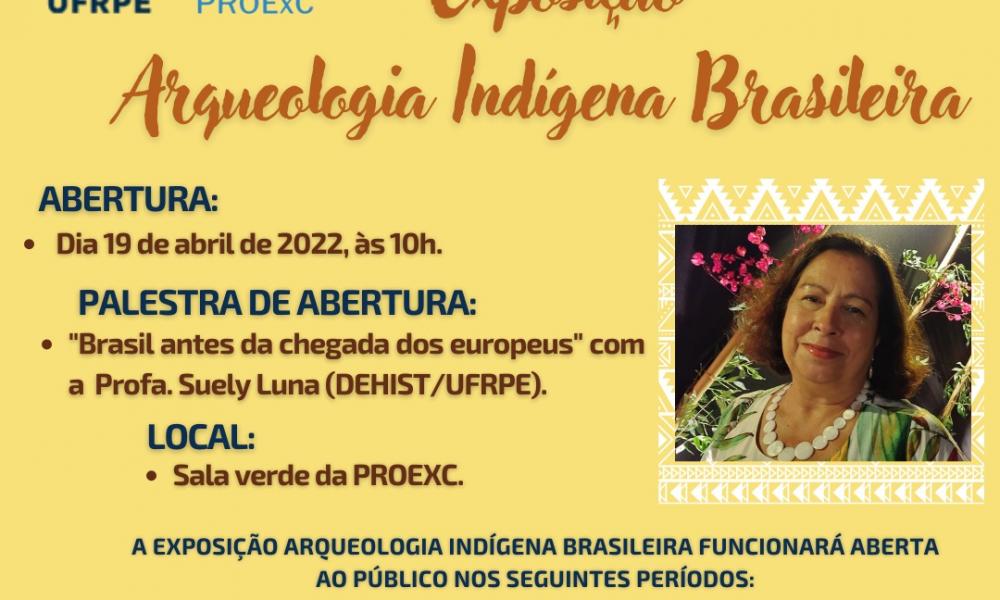 A Exposição Arqueologia Indígena Brasileira exibirá artefatos arqueológicos indígenas do período histórico anterior à chegada dos europeus. Esse é um evento cultural que envolve a história das raízes das ancestralidades indígenas brasileiras contribuindo para incentivo à difusão desse conhecimento à comunidade acadêmica da UFRPE e também com visitação aberta ao público geral.