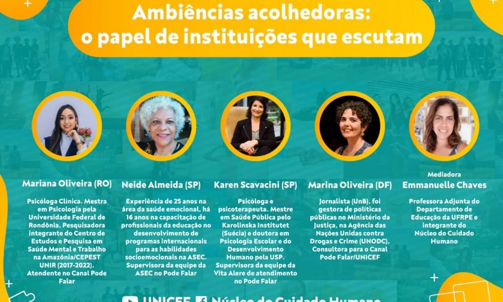 É relevante destacar que o II Seminário Pode Falar é uma iniciativa do UNICEF e parceiros, sob a coordenação do Núcleo do Cuidado Humano da UFRPE.
